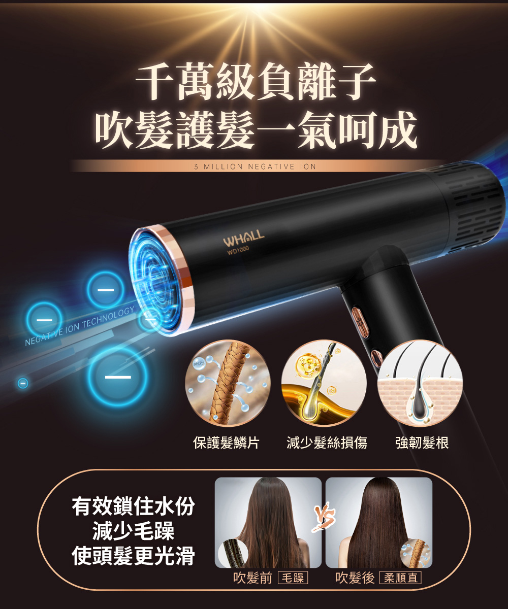 WHALL 專業負離子吹風機 WD-1000