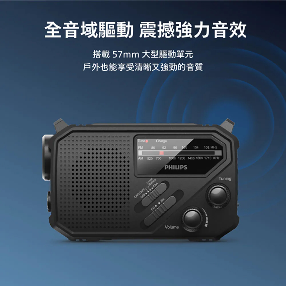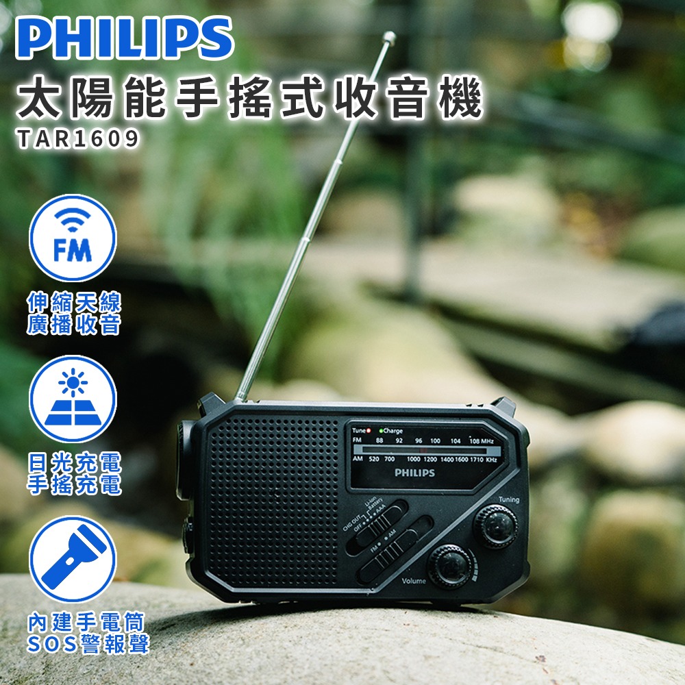 PHILIPS 飛利浦 太陽能應急防災手搖式收音機 TAR1609