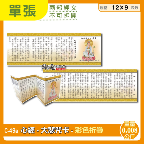 C-49a心經.大悲咒卡12×9公分/單張彩色折疊