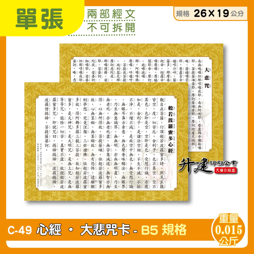 【天橋印經處】C-49心經.大悲咒卡/B5單張