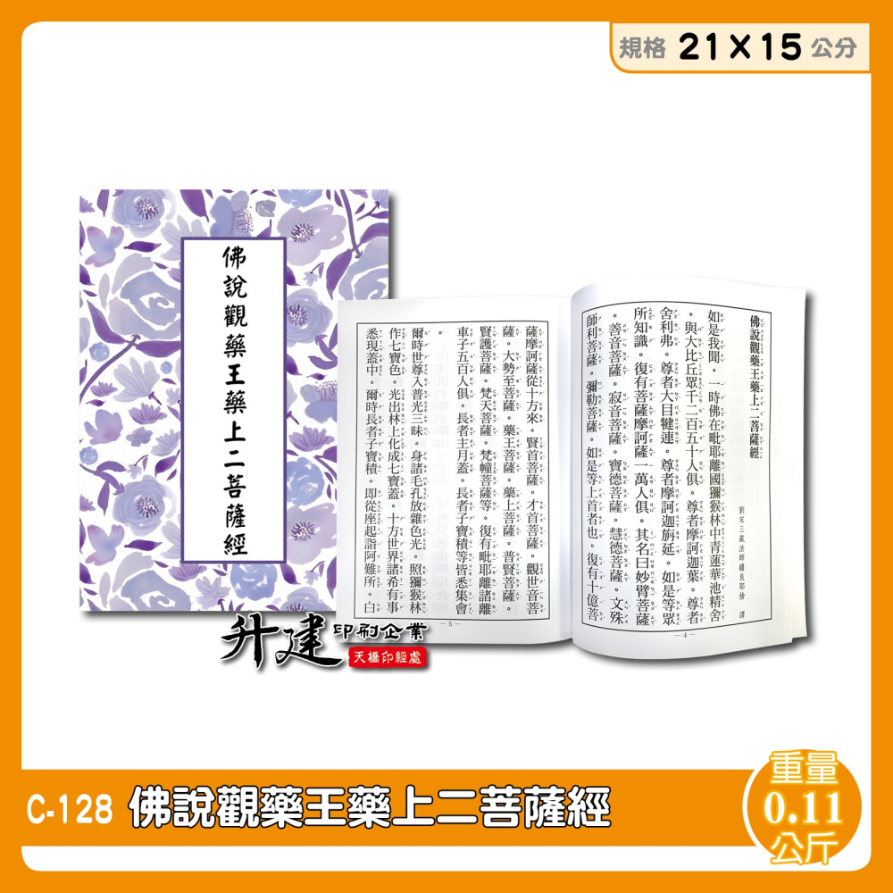 【天橋印經處】C-128佛說觀藥王藥上二菩薩經21×15公分/閱讀經書