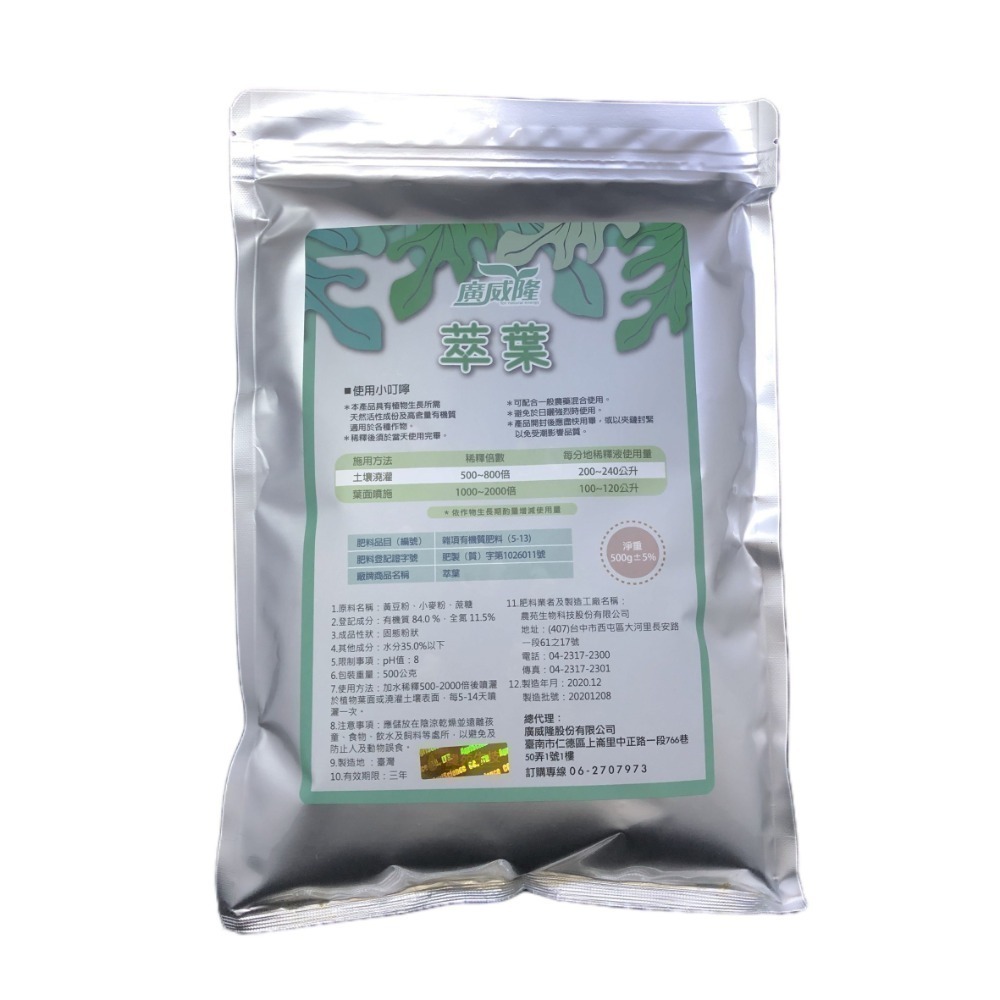 葉面噴灑1000-2000倍、土壤灌注500-1000倍