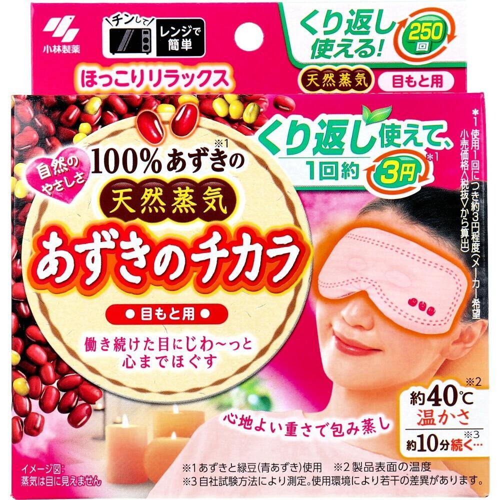小林製藥研發的紅豆熱敷眼罩,內含 100% 天然紅豆。加熱後紅豆蘊含的水分會轉化為溫暖的蒸氣,深層滲透舒緩眼周肌肉,讓您在家就能享受專業級的眼部 SPA。