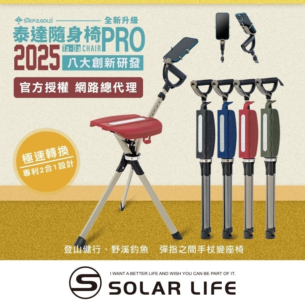 登山健走是不少長輩熱愛的戶外活動,但隨著年紀增長,體力上不免隨之下降,在這種時候,攜帶一支泰達椅,不只是手杖,為您分擔疲勞。
