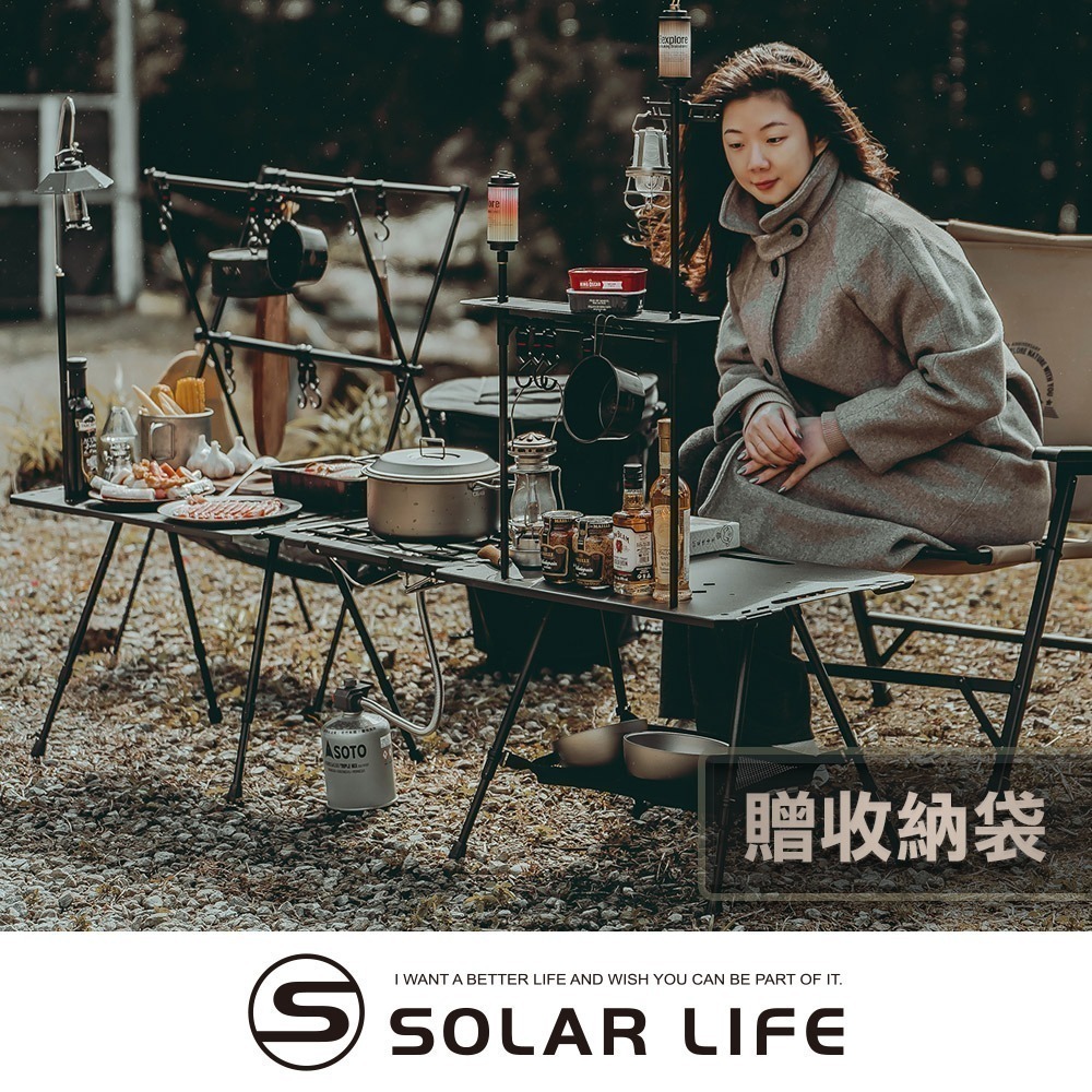 針對露營、野營...等各種戶外冒險生活設計的桌子,以輕量、快速組裝為出發點,鋁合金為主體,桌面四邊彎折工藝打造,結合菱形洞洞造型,多孔置物掛點和燈架孔,打造出硬派風格戰術桌,盡顯陽剛般的氣息,可搭配不同的擴充配件,實現一字型、L形、T形等多種組合,滿足不同場合需求,延伸出戰術桌的多種應用變化,讓你沉浸在組裝搭配的樂趣中。