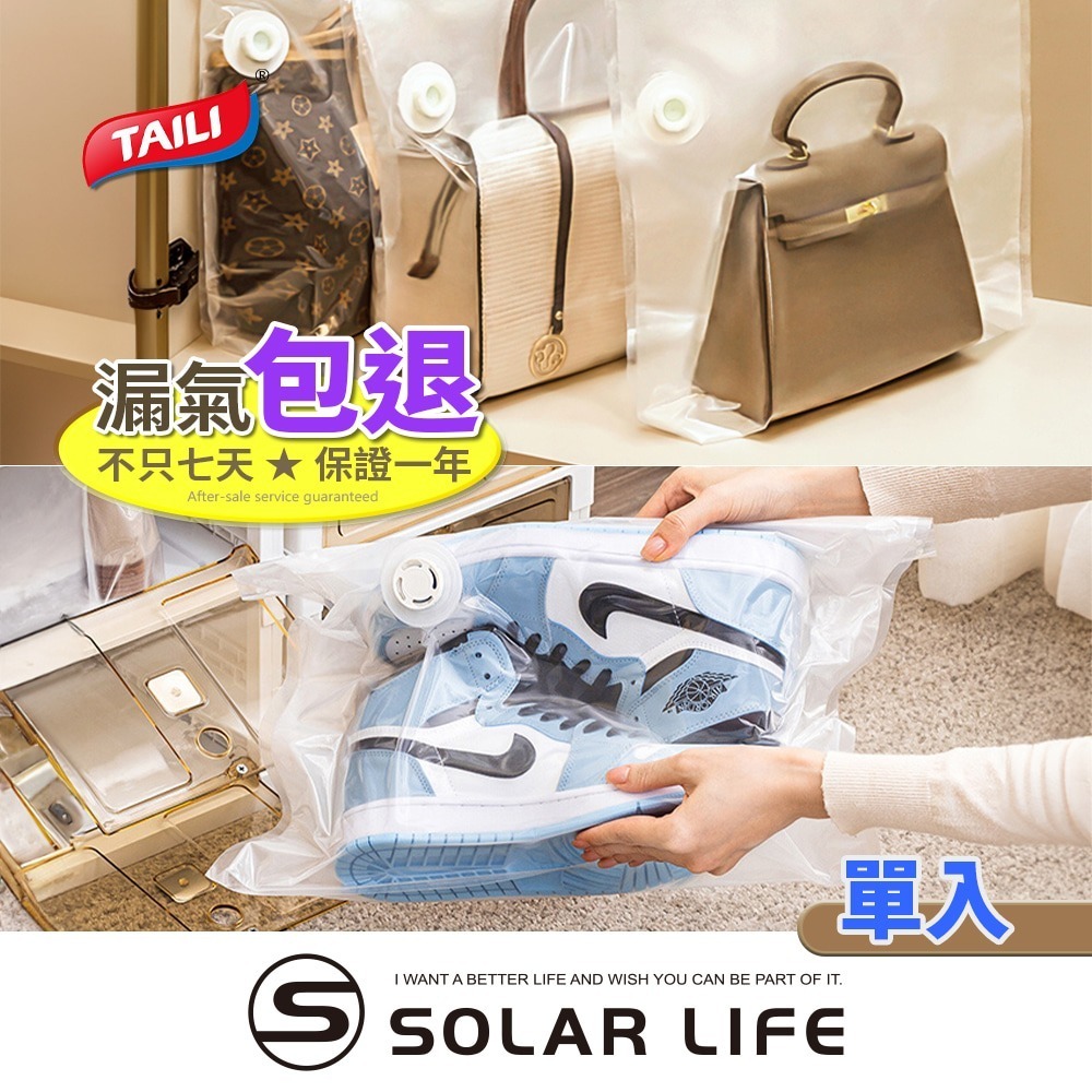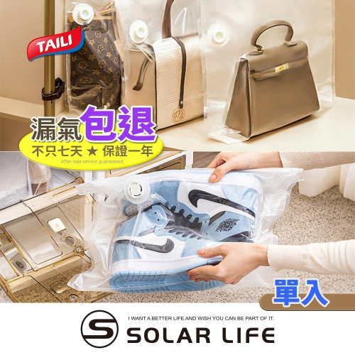 注意事項:: 1. 請將收納物放置約 8 分停止線即可 ( 勿過滿 ),將滑片左右來回密封滑動 2 - 4 次。 2. 拉鍊若處長時間彎曲易降低密封性。封口處若有灰塵可用濕布清潔乾淨後再密封一次。 3. 真空後若出現跑氣現象,請先確認封口是否有封好 ( 滑片來回數次,兩道密封條需密封 ),因袋內的棉被等衣物還會放氣,降低真空度。 4. 收納前請先將收納物晾乾,請勿放入防潮劑或防蟲劑等,以免造成衣物變色。