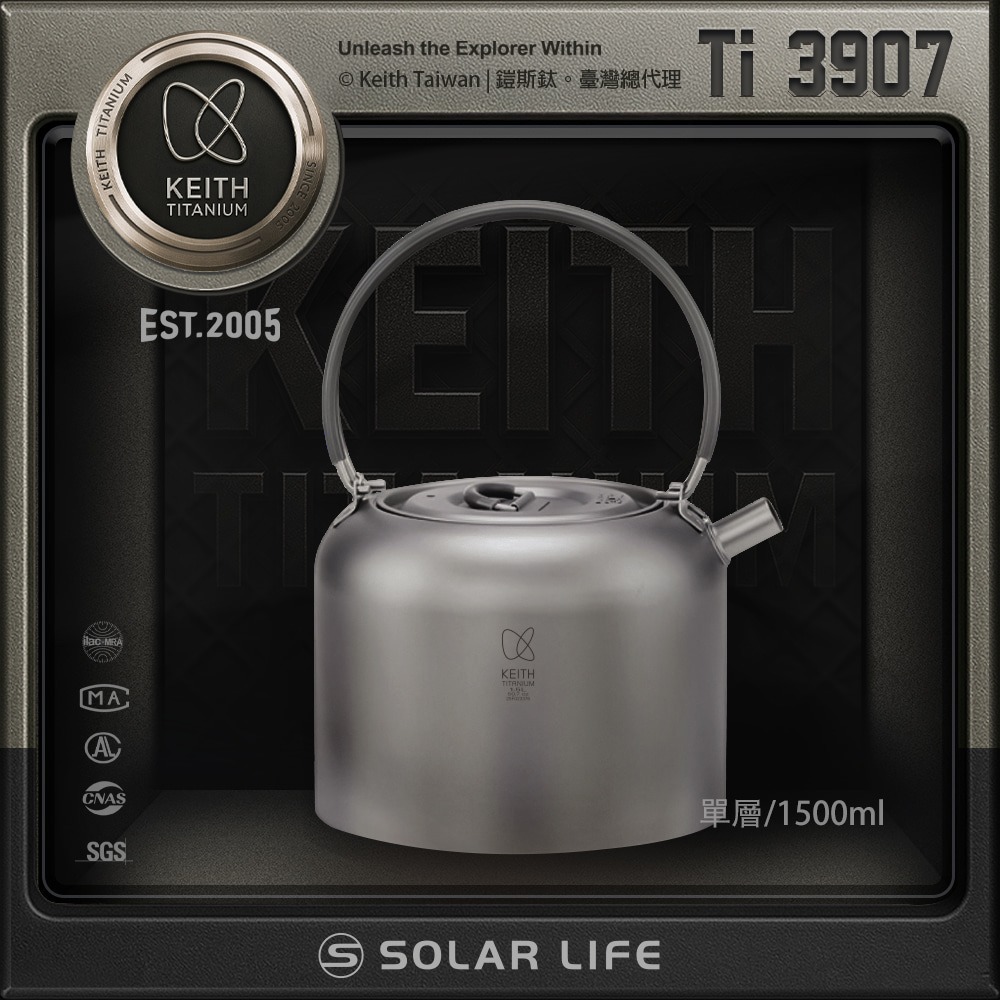 純鈦材質,1500ml容量,登山、野營燒水,輕巧隨行,有別於傳統茶壺,壺嘴採一體成型設計,提把與壺蓋握把可摺疊,便於收納,同時以耐熱矽膠包覆,提取及開蓋防止燙手,表面砂光技術,精細打磨,質地滑順不傷手,使用更安心,純鈦打造,無毒、無味、抗菌、防鏽、耐酸鹼,用來煮水、煮茶,天冷時,也很適合放入甘橘類水果,煮上一壺熱紅酒,不僅溫暖你的胃,更溫暖你的心。