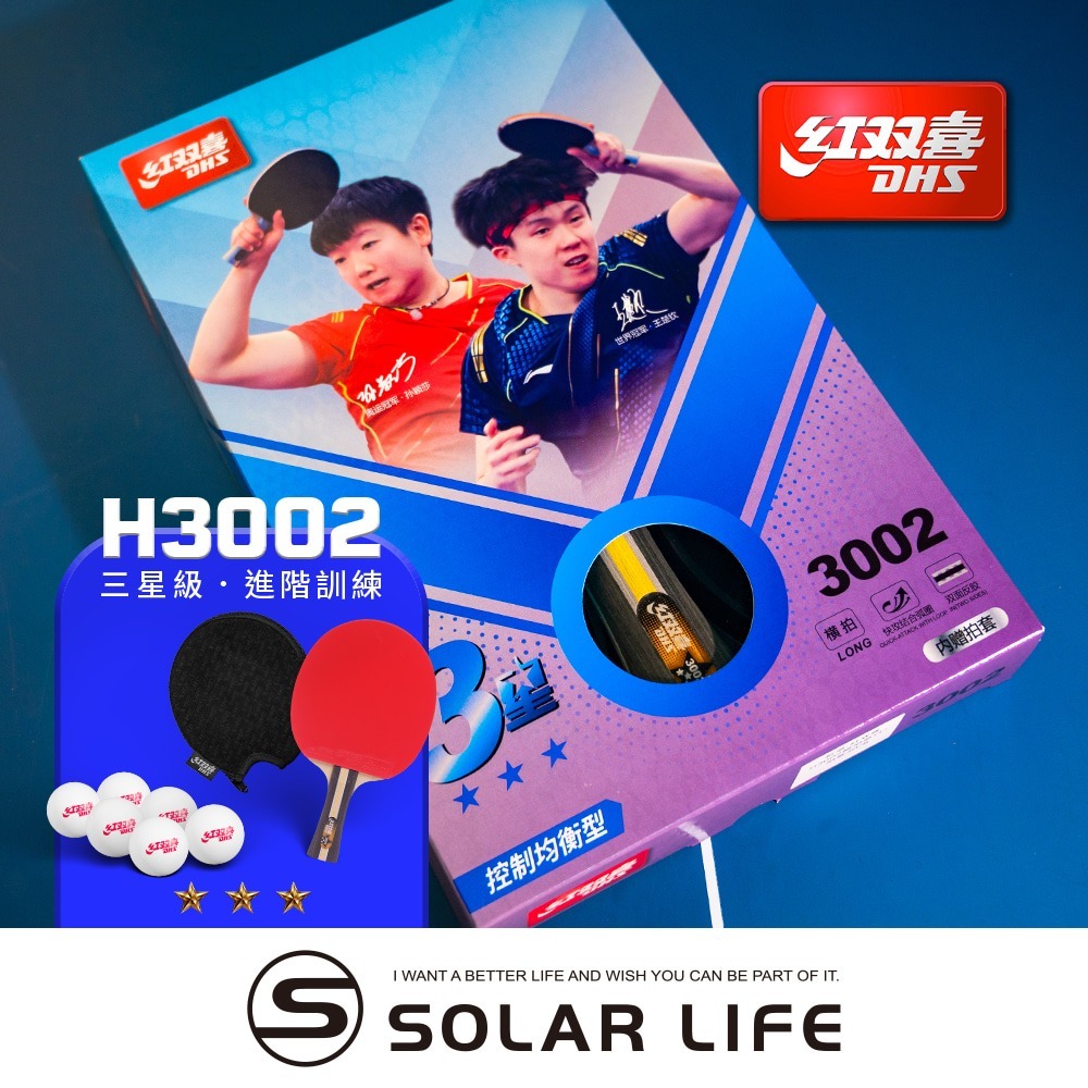 紅雙喜DHS 三星級桌球拍H3002(PF4雙面膠皮)/贈球拍套+6球.乒乓球拍 橫拍 膠皮球拍 負手板 桌球刀板
