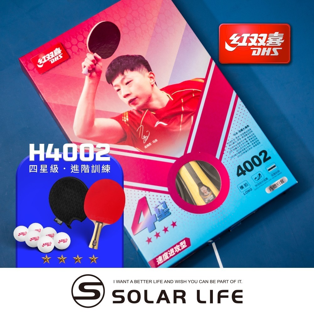 紅雙喜DHS 四星級桌球拍H4002(狂飆3+G888)/贈球拍套+6球.乒乓球拍 橫拍 膠皮球拍 負手板 桌球刀板