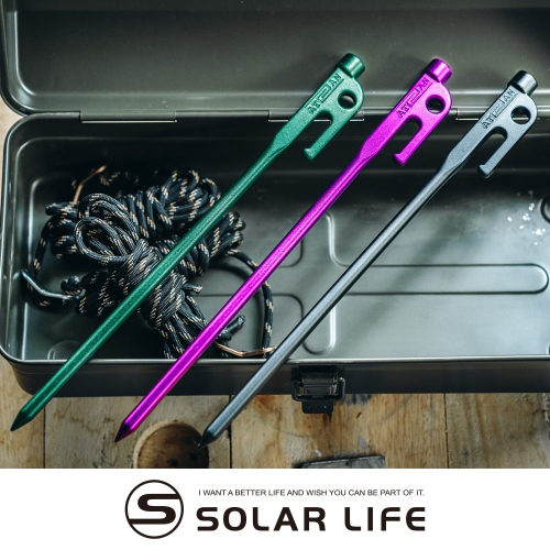 打破以往對營釘的既定印象,達到輕量化為目的,選用【鋁】來取代較重的鍛鐵材質,再以【合金】淬鍊強度與韌性,將兩種特性【堅若磐石】與【輕盈如羽】完美結合,使得每一趟旅行,減輕壓力,攜帶方便,下釘自如、拔釘輕鬆。