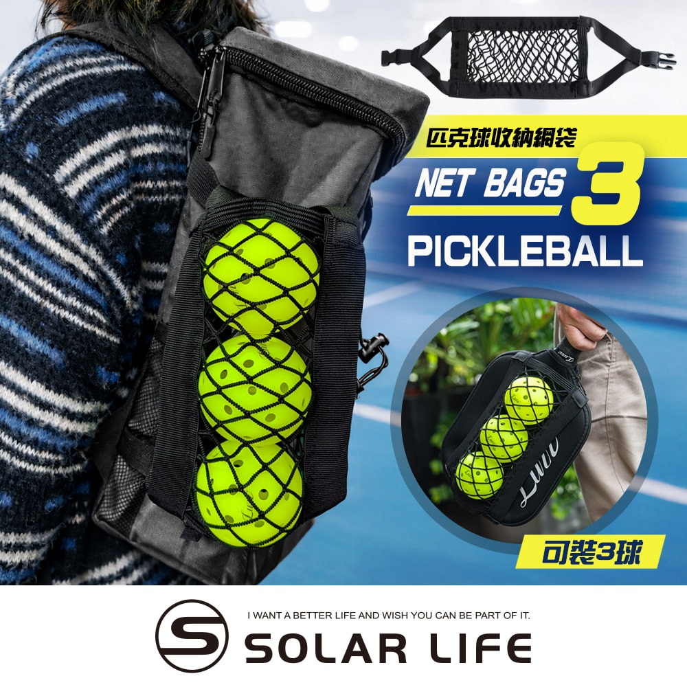採用高彈性織帶與網狀結構設計,可穩固收納約3顆匹克球,彈性包覆不易滑落,整體結構結實耐拉扯,長時間使用也不易鬆弛或變形,無論行走或移動途中,都能有效降低球掉落與遺失的風險。