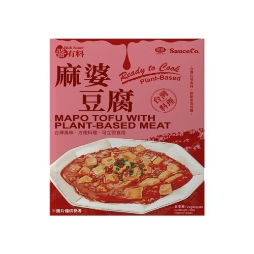成分:腐、麻婆豆腐醬【醬油、橄欖油、辣豆瓣醬[辣椒、甘蔗液糖(糖、水)、水、黃豆(非基改)、鹽、蠶豆、香油[芝麻、大豆油(非基改)]、麵粉、玉米糖膠、八角粉]、芝麻油、辣椒油、糖、蒜、薑、靑花椒粉、白胡椒粉、辣椒粉、鹽】、玉米澱粉、素肉[大豆蛋白(非基改)、脫脂大豆粉(非基改)、焦糖色素、碳酸鈣]、糖。
