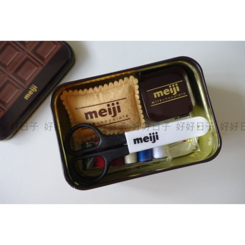meiji 明治巧克力 針線盒 內含:6色線組、針組、針墊、自動捲尺、安全剪刀