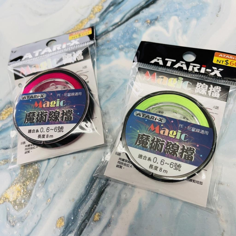 ATARI-X魔術線擋 8米 裝 市售一般棉線結線有兩大缺點: 1.如果不把它綁得很緊,垂釣過程中常易鬆脫,造成釣棚設定偏離。 2.若綁得很緊,當你需要改變釣棚設定時,移動它就會使母線破皮磨傷,因而有斷線流掉浮標的隱憂。 本品柔軟而有彈性,好綁製、不傷線,在母線上附著穩固且經久耐用,結體進出釣竿導環也相當順暢,為徹底解決問題的革命性產品。 ⭐️colour:桃紅色、嫩綠色、黃色、橘色 ⭐️本產品PE、尼龍線適用。 ⭐️適合系0.6~6號。