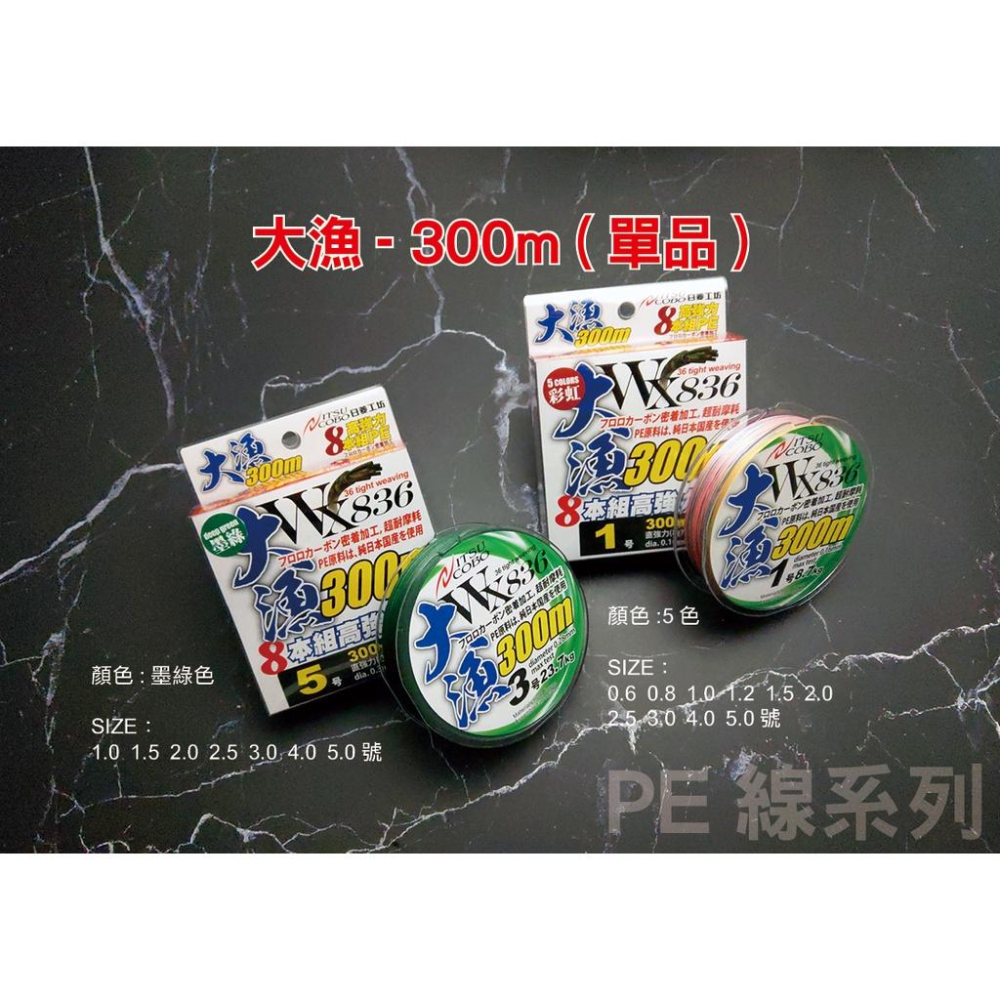 大漁 300M(墨綠色、彩色) 八股編織PE線 0.6號 0.8號 1.0號 1.2號 1.5號 2.0號 2.5號 3.0號 4.0號 5.0號