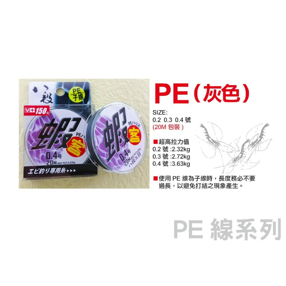 HARIMITSU 泉宏 蝦客 PE子線 釣蝦專用 20M 0.2/0.3/0.4 灰色