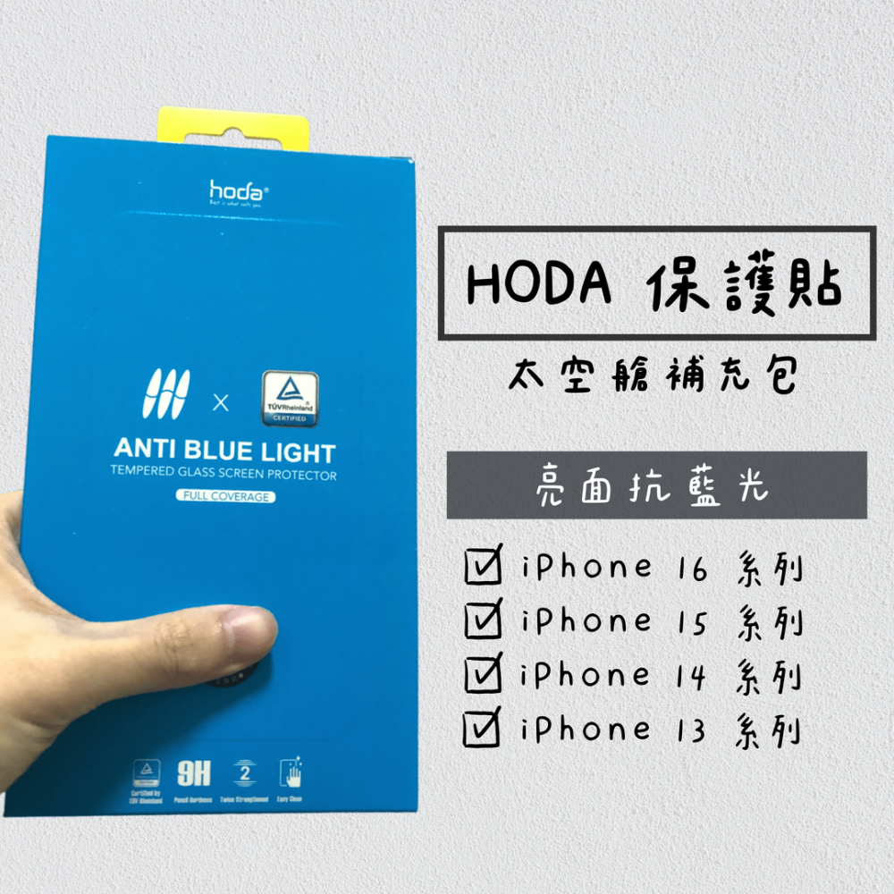 【Hoda 保護貼】抗藍光 iPhone 16 15 14 13 Pro Max Plus保護貼 太空艙補充包