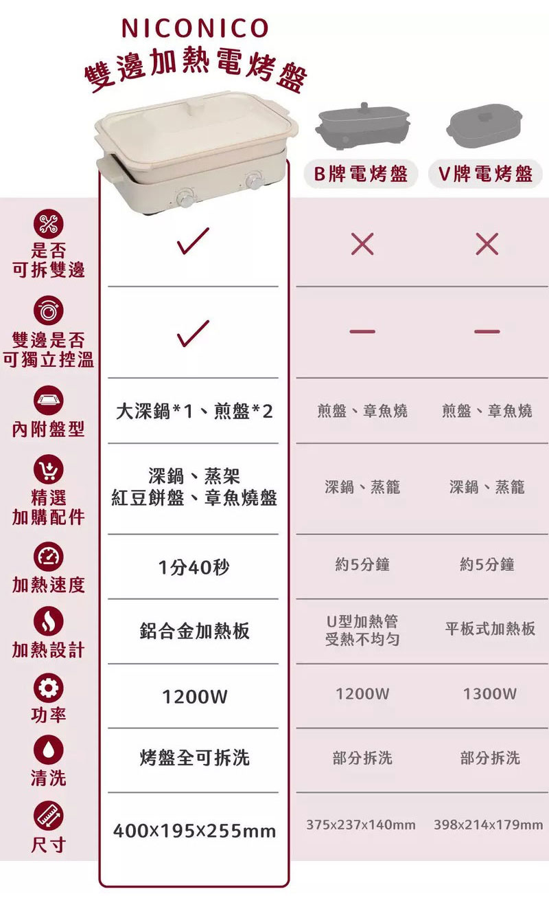 ✨商品名稱:NICONICO雙邊溫控電烤盤NI-K2001