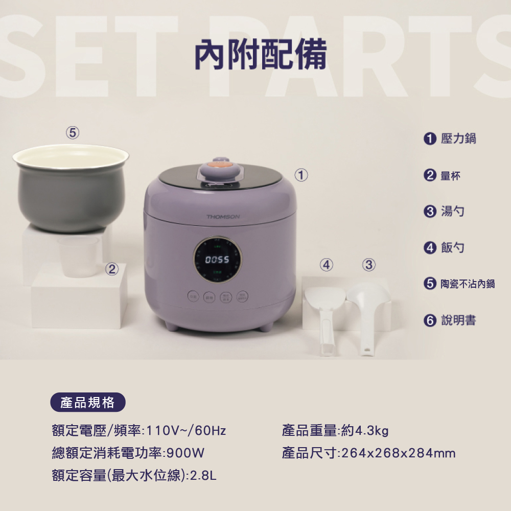 ✨配件:主機、陶瓷不沾內鍋*1、量杯*1、湯勺*1、飯勺*1、說明書(含保證書)*1
