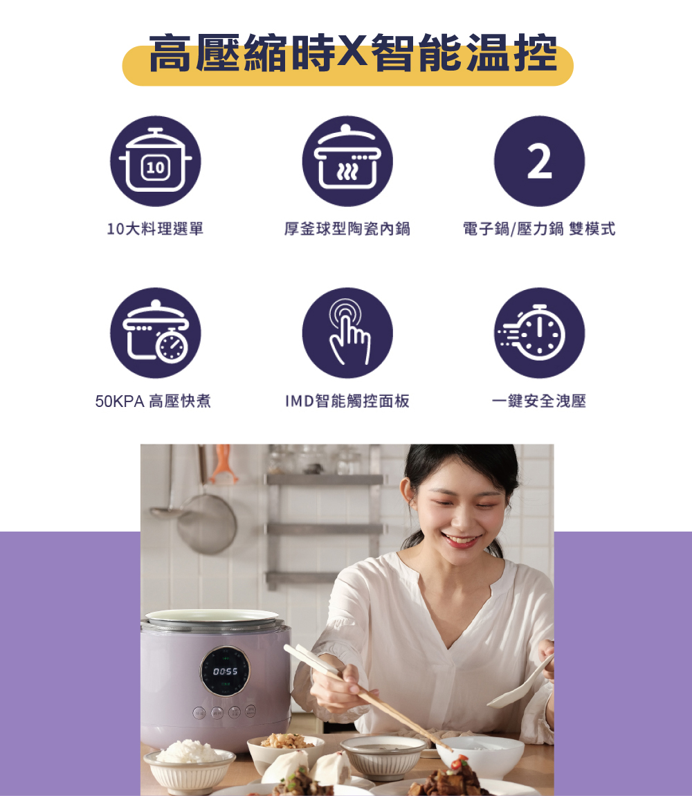 ✨兩種模式,電子鍋/壓力鍋一鍵切換