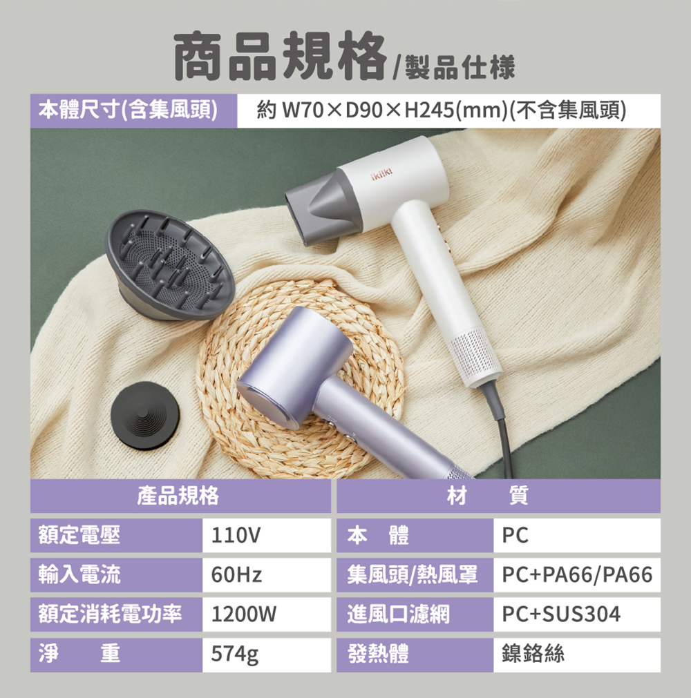✨配件:本體、集風頭、熱風罩、壁掛配件、收納袋、精美禮盒