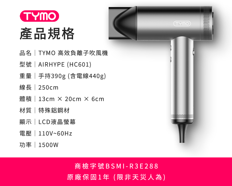 ✨品名:TYMO AIRHYPE 高效負離子吹風機