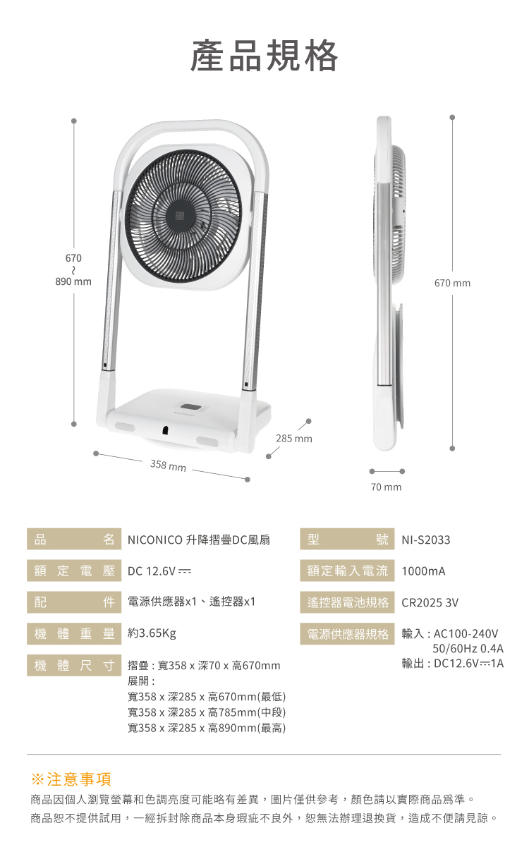 ✨展開尺寸(低段、中段、高段):358 (W) x 285 (D) x 670、785、890 (H) mm