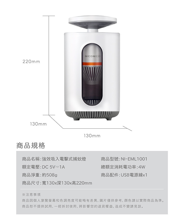 ✨商品名稱:NICONICO強效吸入電擊式捕蚊燈NI-EML1001