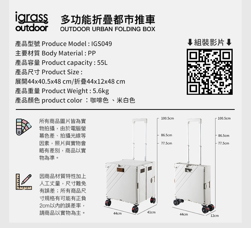 ✨內 容 物:55L多功能露營推車*1,說明書*1