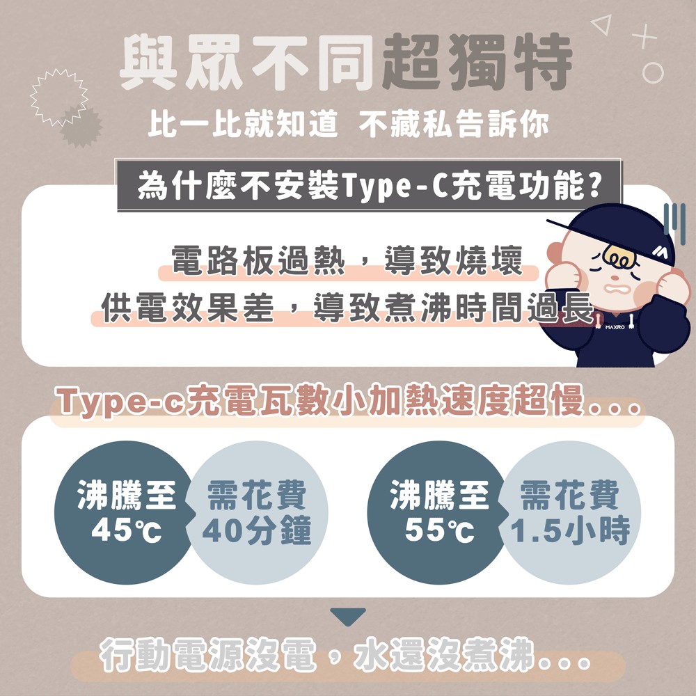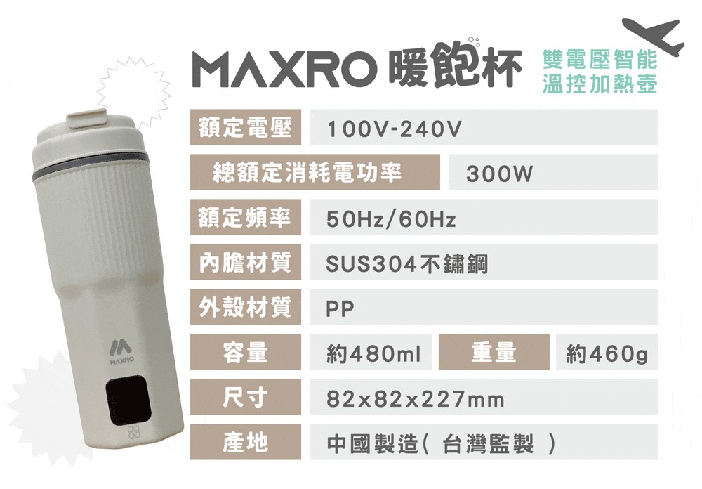 新一代改版上市 .ᐟ.ᐟ 拿掉Type-c加熱功能,採用新型加熱面板,使加熱功能更加穩定.ᐟ.ᐟ3in1 熱水壺+保溫杯+隨行杯=MAXRO 雙電壓智能溫控熱水壺 ✅ ✦ 國際寬電壓100v~240v,自動跳轉對應電壓,出國也可以輕鬆使用!✦ 六段溫度調節,泡茶泡奶泡咖啡泡泡麵,輕鬆搞定!