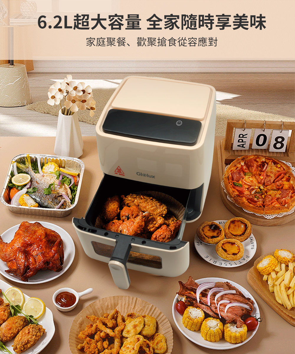 最新款優惠免運✨公司貨保固【Glolux 透視智能觸控式氣炸鍋 6.2公升 AF-6201】健康 菜單 定時 大容量