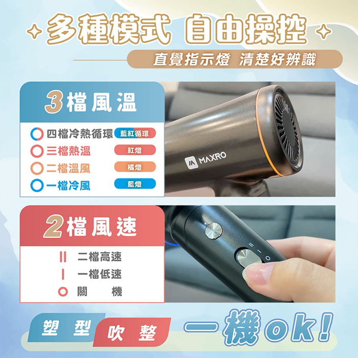 ✨冷熱風循環吹風,降低溫度過高導致頭皮過燙、損傷的風險