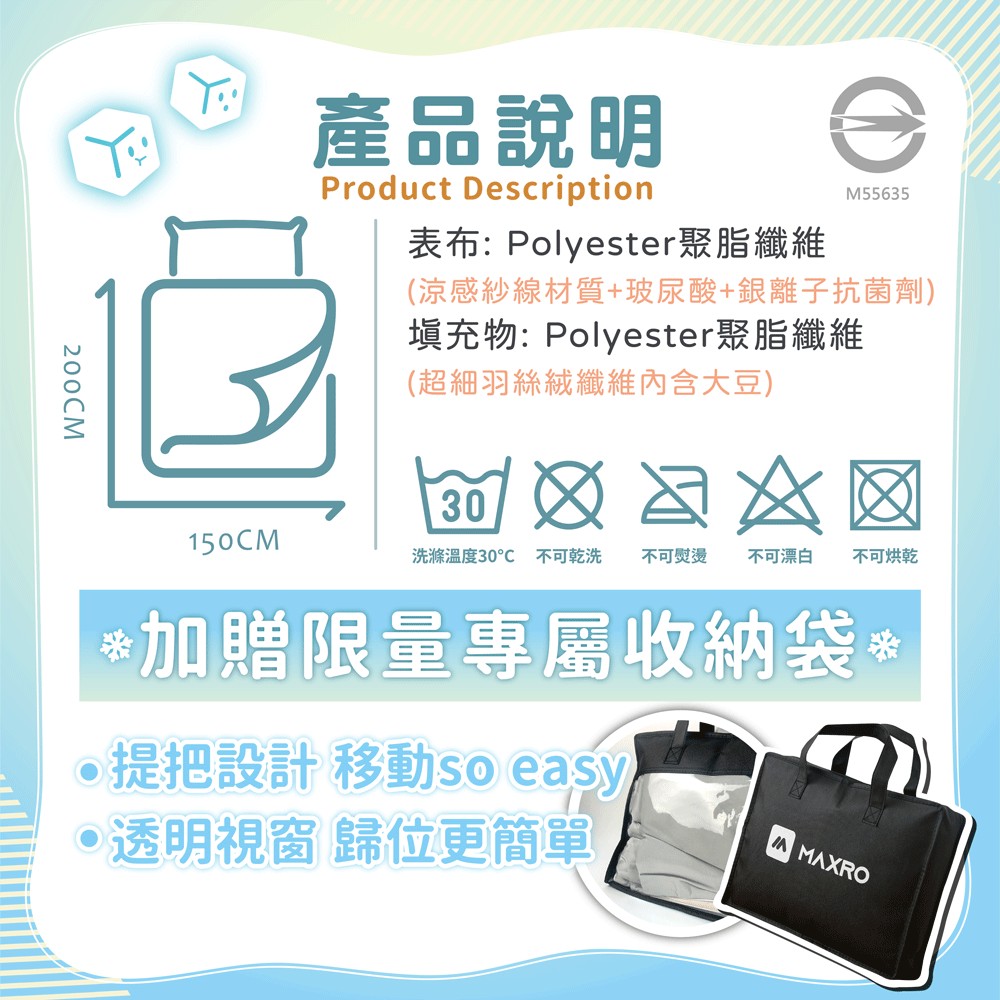 ✨品名:MAXRO -7°C玻尿酸大豆極涼被