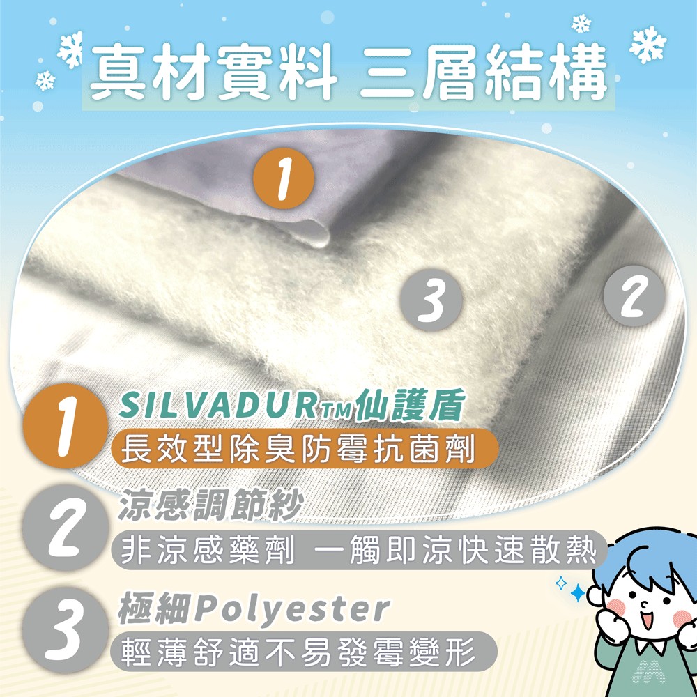 ✨表布:100% Polyester聚脂纖維 (涼感紗線材質+玻尿酸+銀離子抗菌劑)