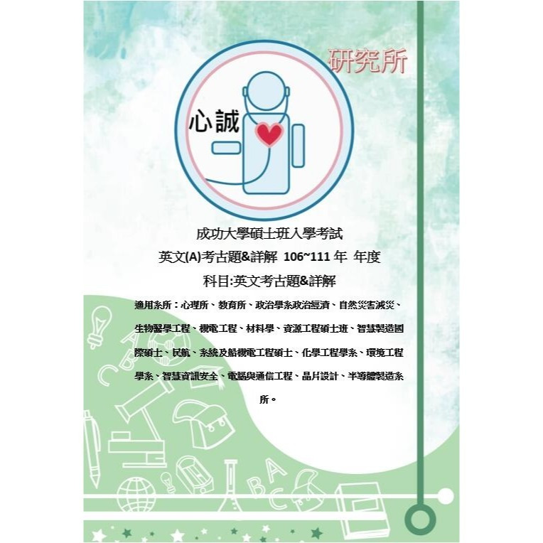 適用系所:教育碩士、心理所、政治學系、政治經濟學、自然災害減災及管理;生物醫學工程學系、環境工程學系碩士班、化學工程學系、民航研究所碩士班、系統及船舶機電工程學系、材料科學、資源工程學系碩士班、智慧製造國際碩士、心理學系、晶片設計、半導體製造、智慧資訊安全、電腦與通信工程