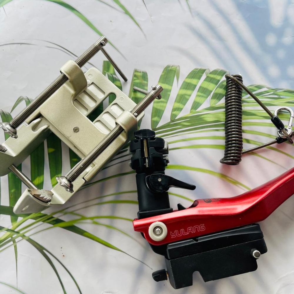 架距 約19cm (不含夾頭) 高約26cm 最大夾距16cm 重量 約1850g 附2米加粗失手繩 (100斤拉力)