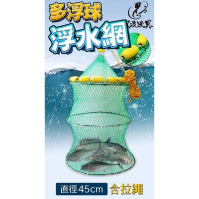 使用超商出貨 會凹起來 不介意在選超商!!! https://s-cf-tw.shopeesz.com/file/c756523aee8427630c49dfd2865edaa1 手工編織耐重力大,加粗束口繩,網圈鋼絲加粗,任意摺疊不易變形,嚴選專業海用浮標 浮力大,底部配有金屬配重。 附贈:尼龍粗線失手繩 #多球浮水網 #浮網 #網袋 #豐收漁具 #網具 #釣具