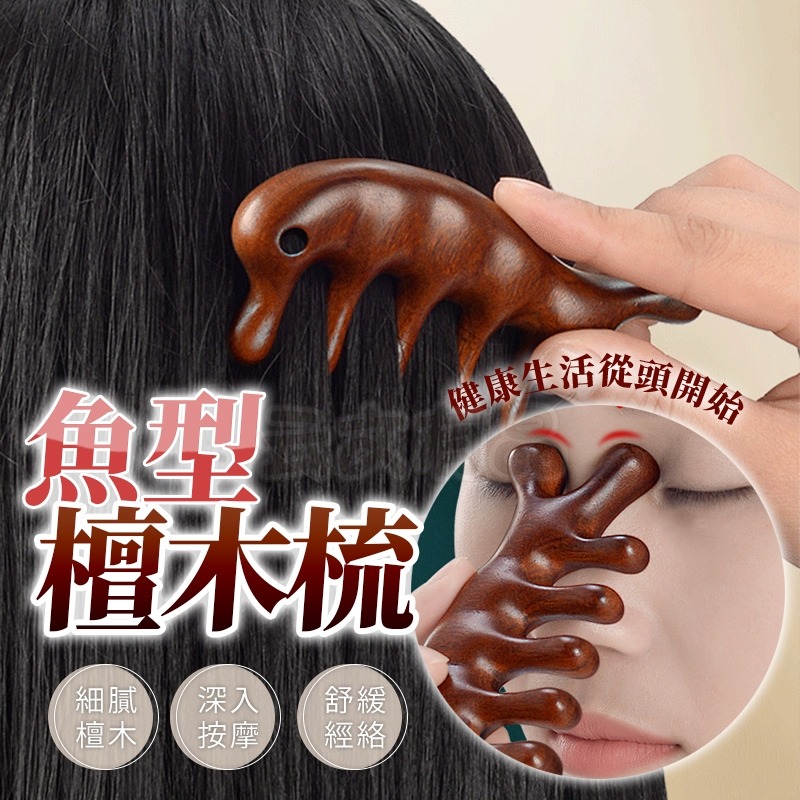 🎀 【商品名稱】: 魚型檀木梳 🐟
