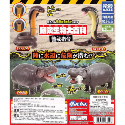[御宅族] T-ARTS 代理 轉蛋 扭蛋 危險生物大百科 警戒指令篇 全4種 現貨 眼鏡王蛇 河馬