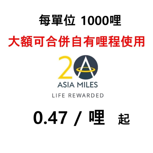 單筆 100 萬哩 以上:【1哩 = 0.47元】