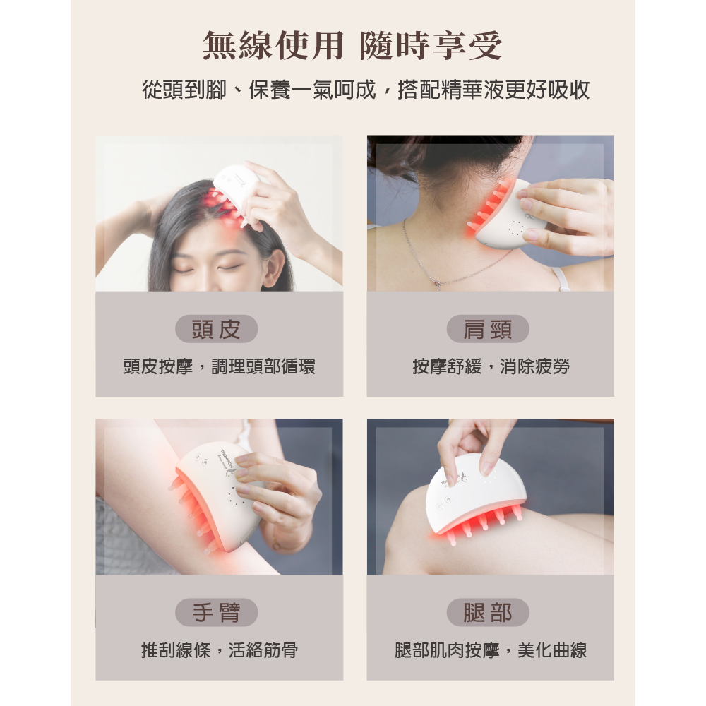 ✔ 不只是頭皮按摩,還能用來刮痧,促進全身新陳代謝,提升循環效率!