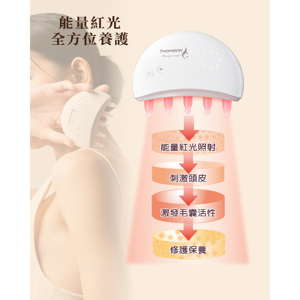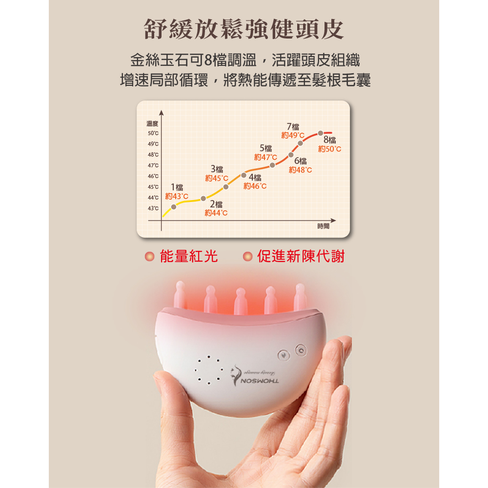 💡現代生活壓力大,頭皮健康容易被忽視。THOMSON 溫感按摩金絲玉梳不僅是一把梳子,