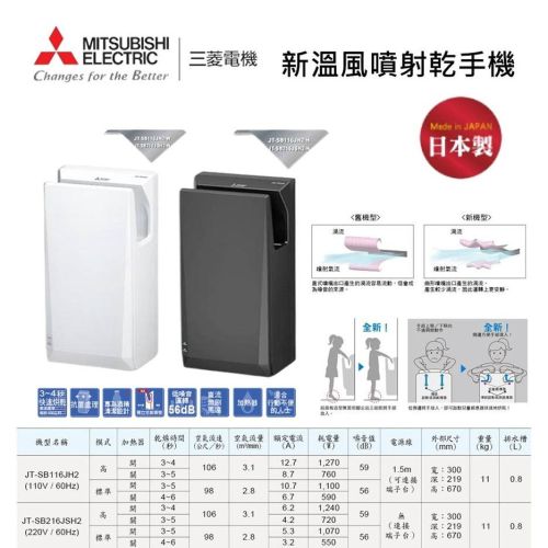 型號電源:JT-SB116JH2-H 110V(60HZ) / JT-SB216JSH2-H 220V(60HZ)