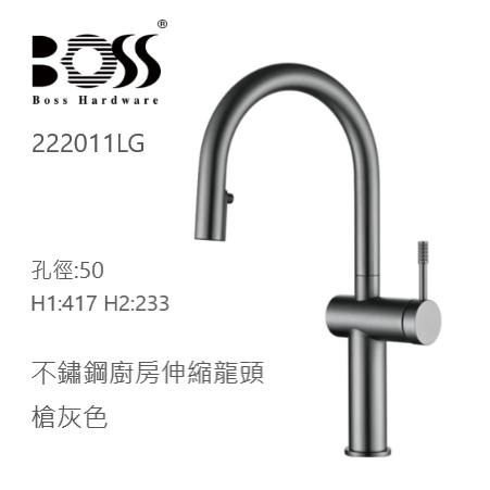 BOSS 無鉛 304 不鏽鋼廚房龍頭 222011LG 槍灰色 出水可左右旋轉 西班牙賽道陶瓷閥芯 台灣製造