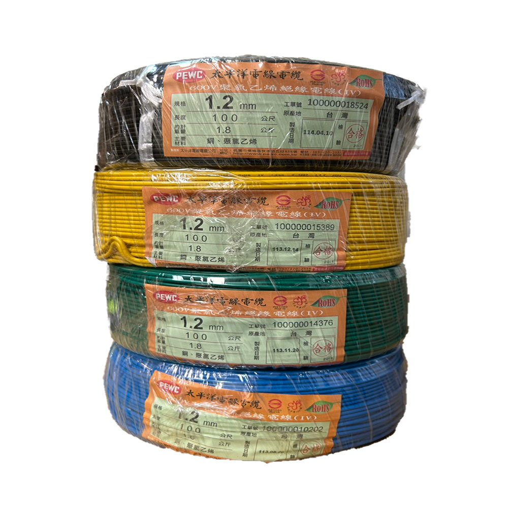 1.2mm單芯線:紅 /黑 /白 /黃 /藍 /綠,共6種顏色,此產品重量約 1.8公斤/捲