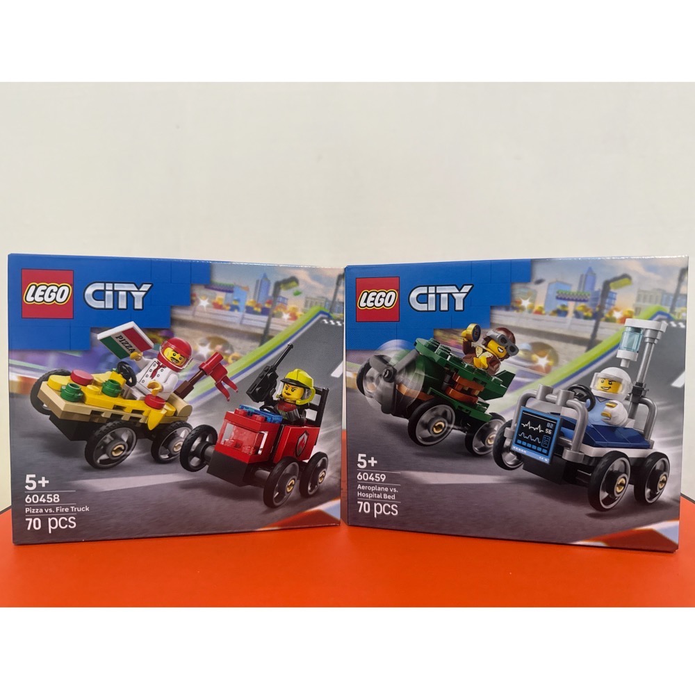 樂高 60458 披薩vs.消防車賽車套裝;樂高 60459 飛機vs.病床賽車套裝(City 系列)