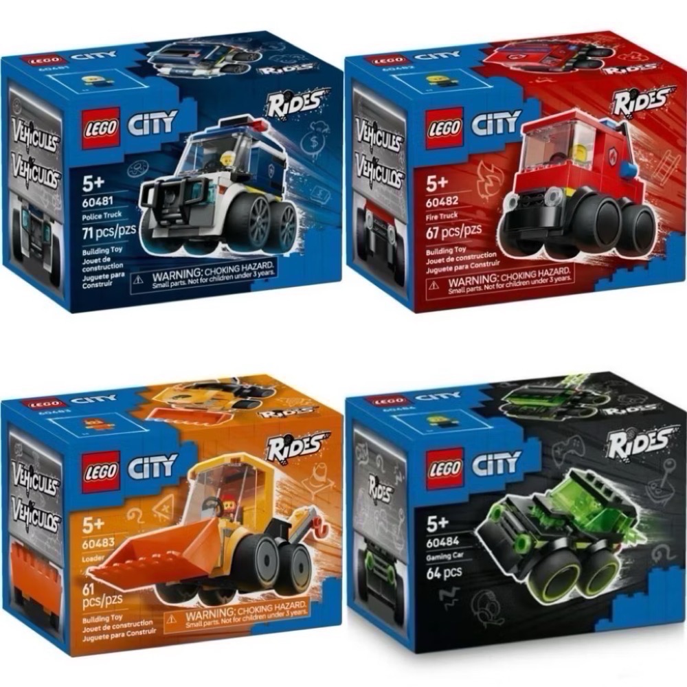 一套4盒(附彩盒):樂高 60481警用卡車 60482消防車 60483工程裝載機 60484電玩賽車