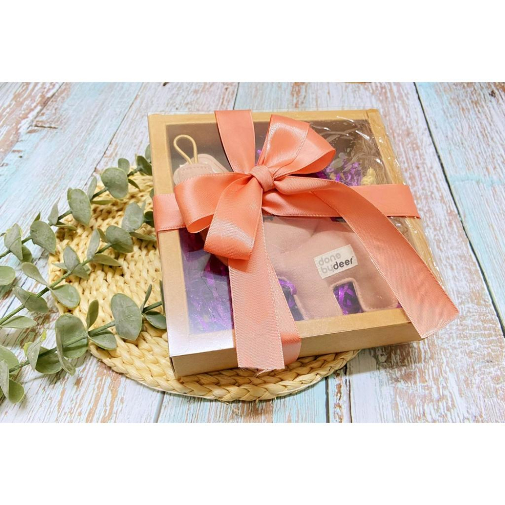 僅限加購 精美禮盒+質感手綁緞帶 送禮首選 外盒尺寸 大禮盒: 26.5*16*8.5 cm 適合迷你可愛好朋友、音樂拉鈴、推車玩具.. 小禮盒: 18*12*5.5 cm / 17*17*5 cm 適合小小手搖鈴、奶嘴鍊、安撫巾.. 加贈 Done by deer超可愛著色本,數量有限,送完為止