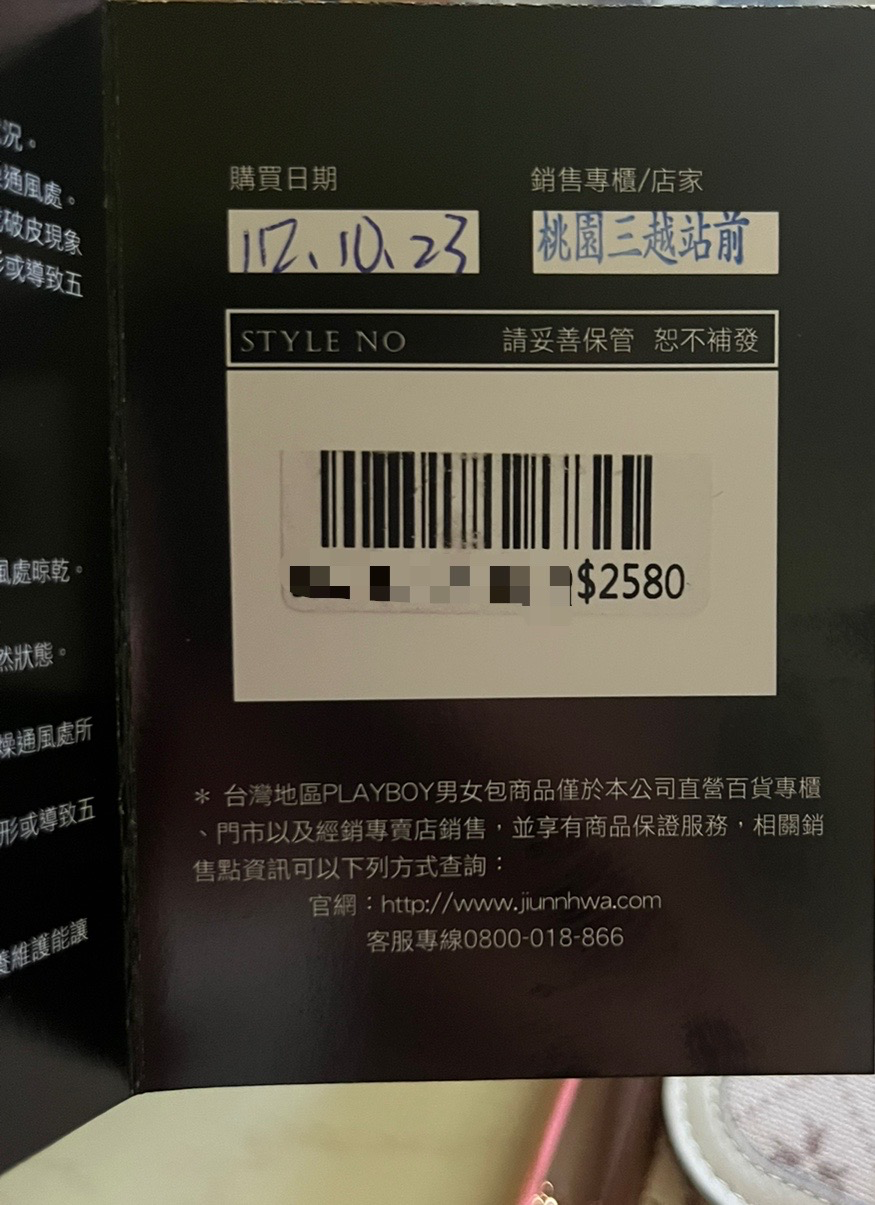 附贈 保固卡(購買日期後保固6個月,保固日期2024/04/23)、購買收據、playboy專用紙盒、提袋