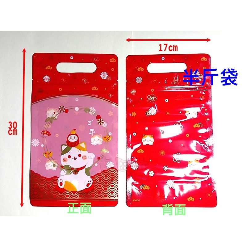 [吉田佳]B512172,平安福貓手提夾鏈袋(50入/包)半斤17*30,另售蝴蝶結牛軋糖包裝袋彩色立體夾鍊袋手提夾鏈袋